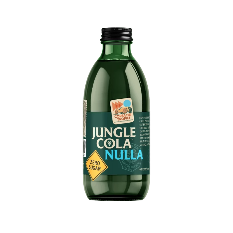 Zero kalorii, maksimum dzikości. Jungle Cola Zero to lekka, świeża alternatywa dla klasycznej coli, stworzona dla tych, którzy szukają pełnego smaku bez kompromisów. Zielona butelka o pojemności 330 ml z odkręcaną nakrętką oraz etykieta inspirowana podróżami sprawiają, że każdy łyk to nowa wyprawa – bez zbędnego obciążenia.